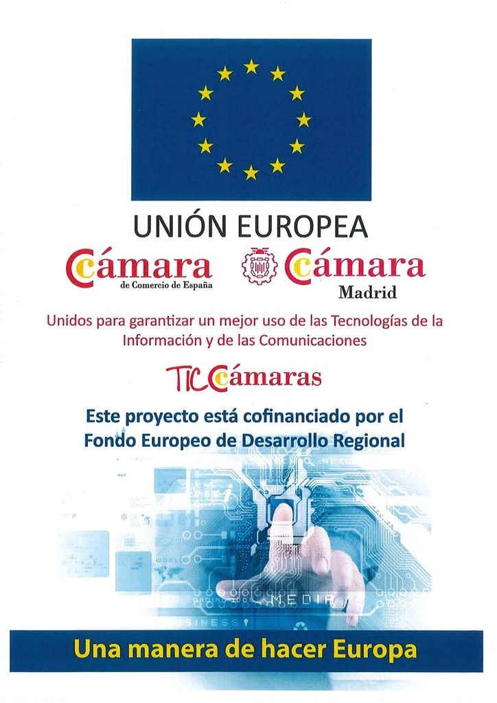 Mª VICTORIA PEREZ MAYAL , ha sido beneficiaria del Fondo Europeo de Desarrollo Regional , cuyo objetivo es mejorar el uso y la calidad de las tecnologías de la información y de las comunicaciones y el acceso a las mismas , y gracias al que ha podido implantar las siguientes soluciones: Presencia web a través de página propia SEO. Esta acción ha tenido lugar durante los años 20 21 -20 22 . Para ello ha contado con el apoyo del programa TICCámaras de la Cámara de Madrid”.